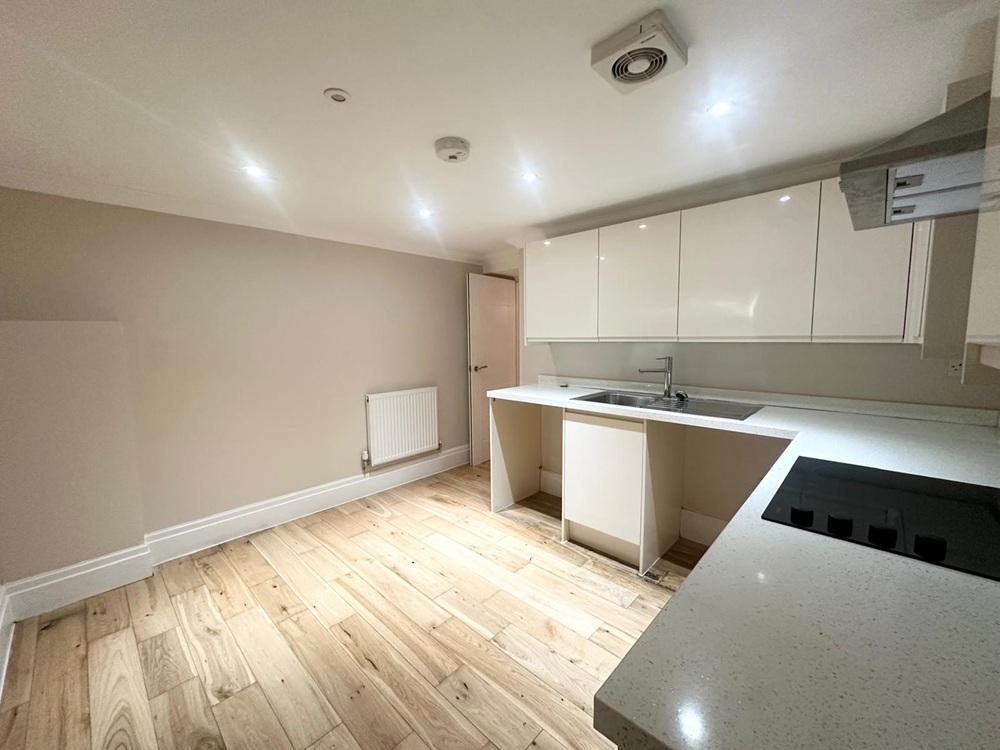 The bright and spacious kitchen is fitted with an integrated oven and provides space for a washing machine and dishwasher, making it ideal for modern living.
