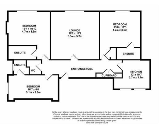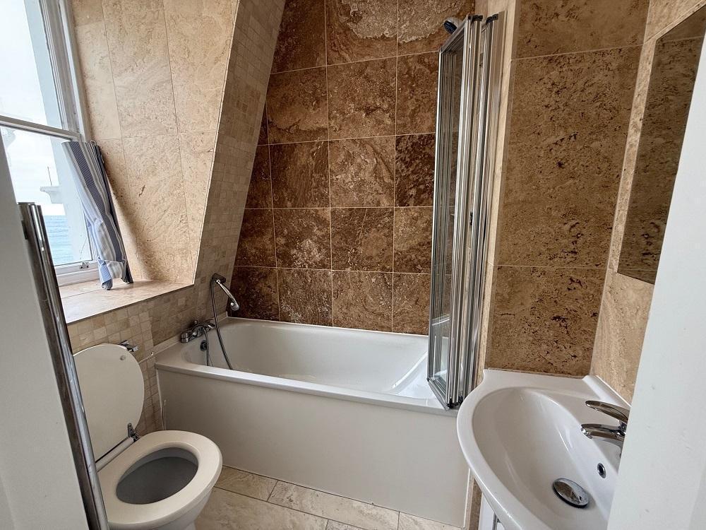 Situated on the top floor of a grand period building, the property boasts three generously sized double bedrooms, each with its own private en-suite bathroom. There is also an additional guest W/C for convenience.